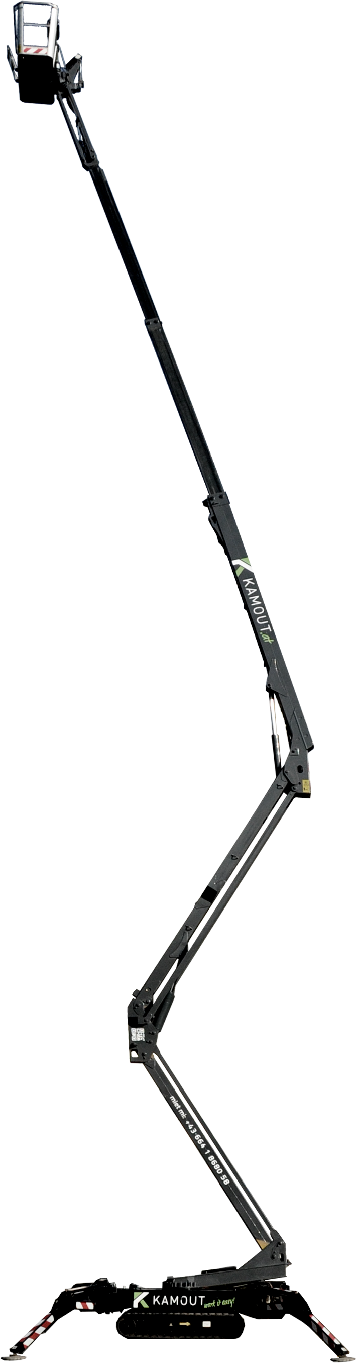 - Sicheres Arbeiten in der Höhe durch: allseitigen Arbeitskorb, Not-Aus-Schalter, Überlastsensoren, Persönliche Schutzaus-rüstung gegen Absturz (PSAgA)